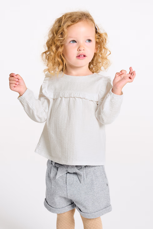 Blouse fantaisie à volants fleurie blanc bébé fille
