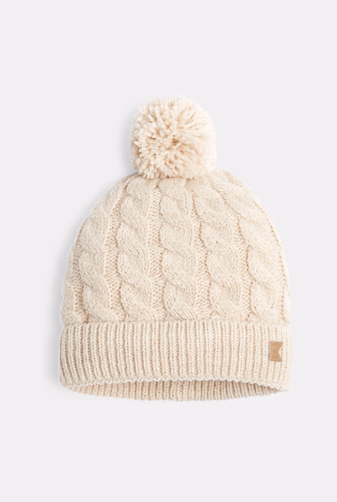 Bonnet torsadé à pompon beige Fille