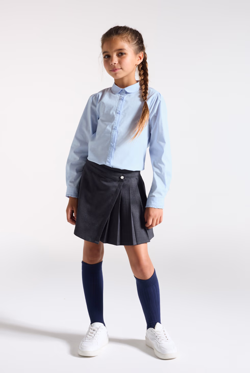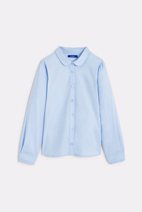 Chemise unie col Claudine turquoise fille