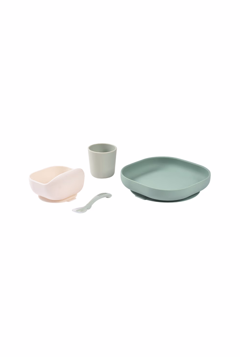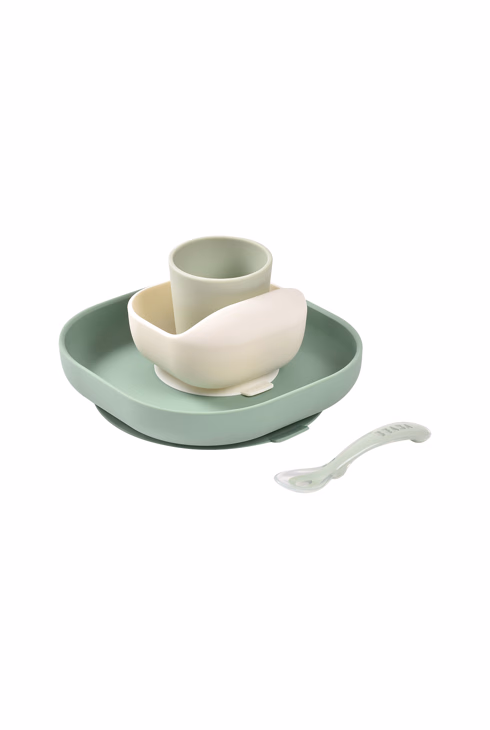 Coffret repas silicone 4 pièces Vert sauge/Vert de gris