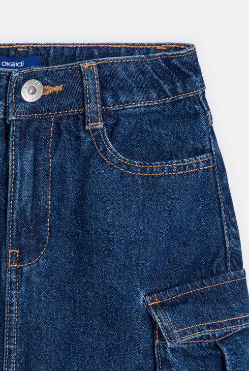 Jupe cargo jeans fille bleu