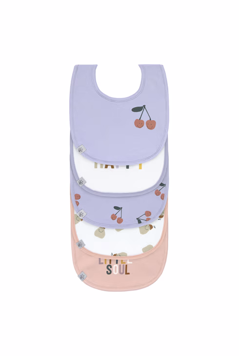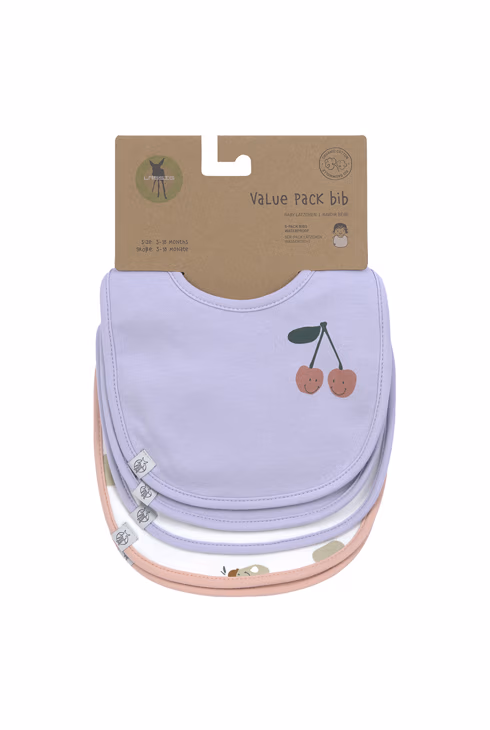 Lot de 5 bavoirs coton (bio) Happy Fruits Cerise, Lilas/Pêche LÄSSIG