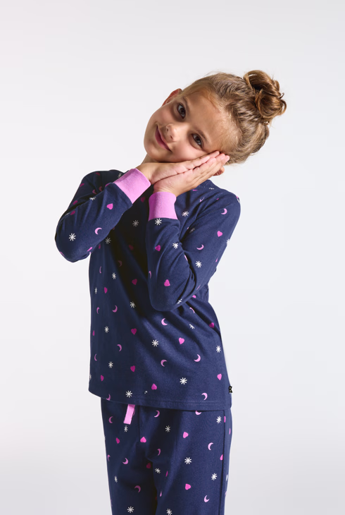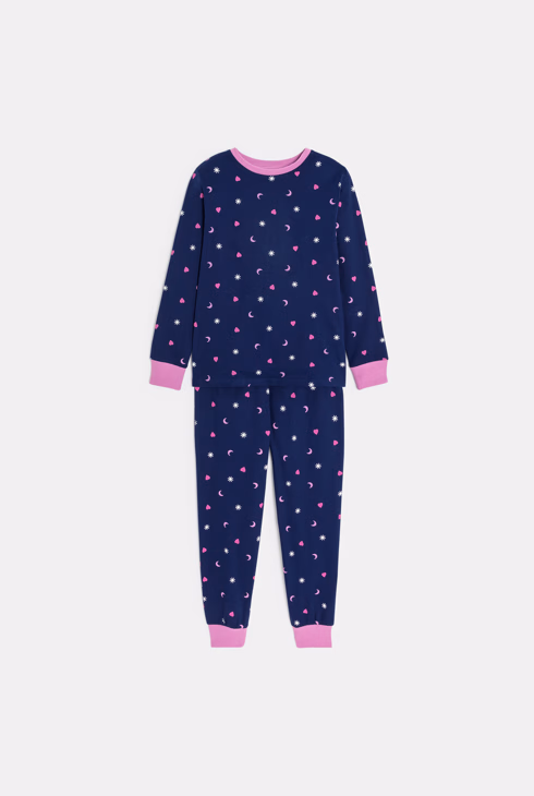 Pyjama 2 pièces en jersey imprimé bleu marine Fille
