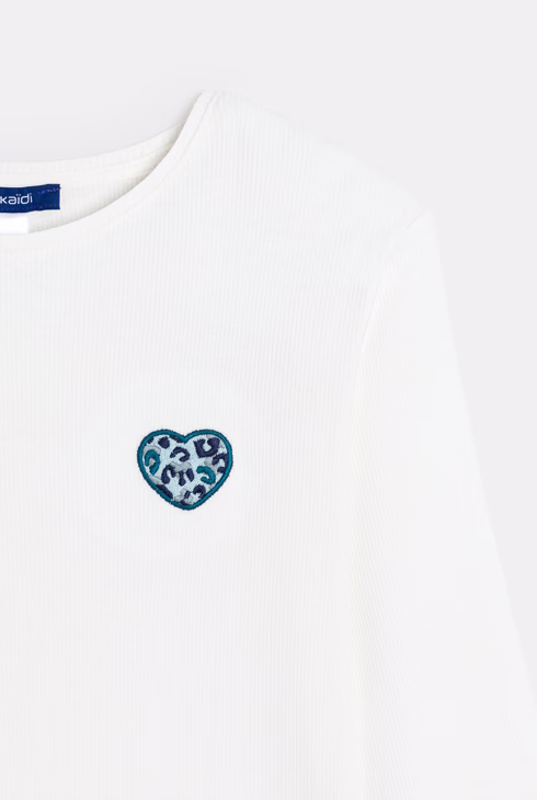 T-shirt manches longues cœur léopard blanc Fille