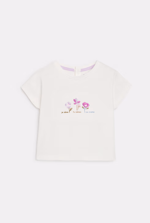 T-shirt sensoriel fleurs blanc bébé fille