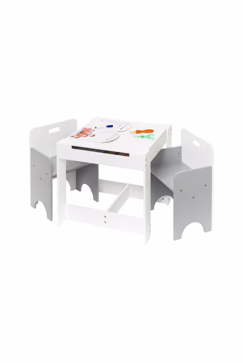 Table de jeux et ses deux chaises encastrables grises Oxybul